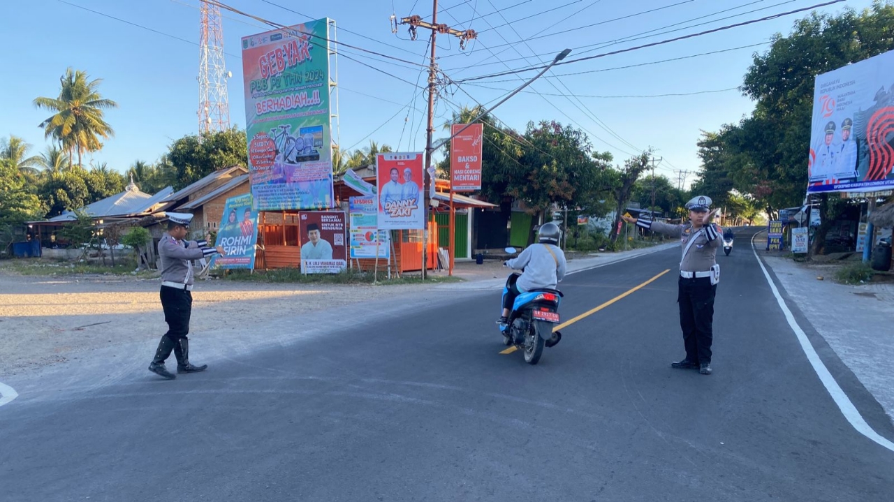 Nusa Brita Lombok Utara, Polda NTB – Satgas Preventif Ops Gatari Praja 2024 melalui Subsatgas Lantas Polres Lombok Utara, Polda NTB melaksanakan kegiatan strong point guna menciptakan kamseltibcar lantas di beberapa titik di wilayah Kabupaten Lombok Utara, jelang Pilkada serentak 2024. Kamis, 15/8/2024.