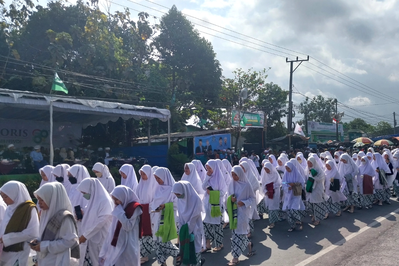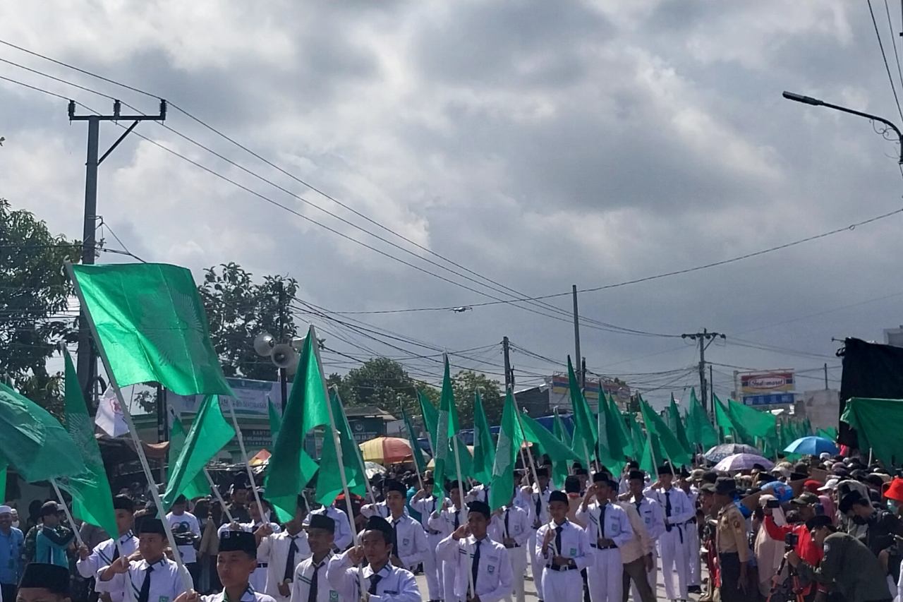 Nusa Brita Anjani Lombok Timur – Pawai alegoris dalam rangka menyambut Hultah Madrasah NWDI ke 89 di ikuti oleh ribuan santri dari berbagai daerah di seluruh Indonesia yang tergabung dalam organisasi Nahdlatul Wathan ( NW ) di Anjani Lombok Timur ( 07/08/2024)