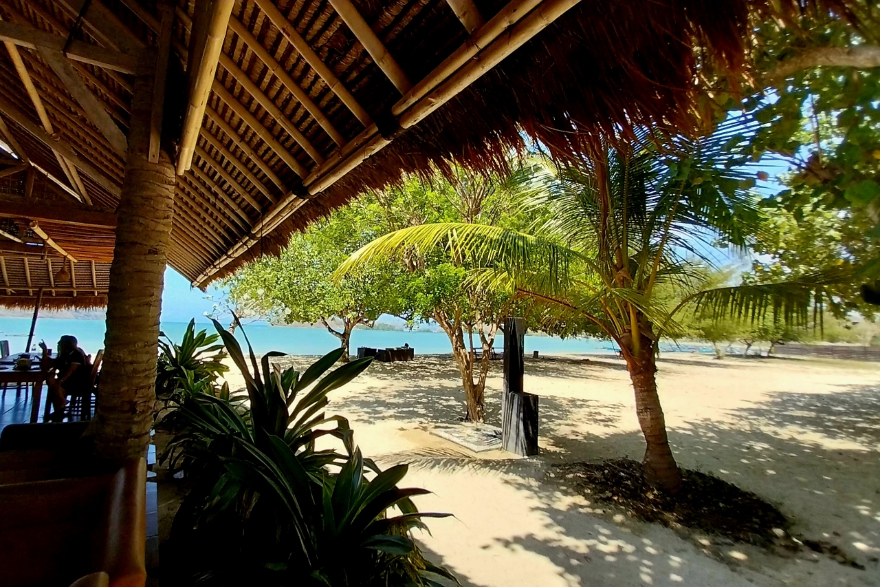 View pantai terlihat indah dari kamar yang terbuat dari Bambu yang alami sehingga pengunjung atau tamu yang nginap akan merasakan kenyamanan dan ketenangan dan saat berlibur juga bisa menikmati pasilitas yang ada di Bumbangku