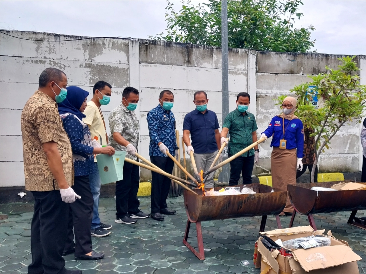 Barang bukti berupa Obat-obatan dimusnahkan dengan cara dibakar ,barang bukti nerupa minuman beralkohol dimusnahkan dengan cara dituangkan kedalam salurana pembuangan air, dan barang bukti berupa handphone dimusnahkan dengan cara di pecahkan tutup Iwan.