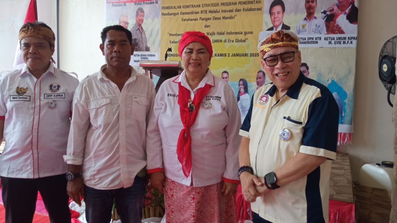 Nusa Brita | Mataram, Ketua Umum DPP Kita Indonesia Prabu “KIPRA” Ir. Evie Maisarah melantik dan mengukuhkan Ketua dan Pengurus DPW dan DPD KIPRA Provinsi NTB periode 2024-2029 ( 02/01/2025 ) bertempat di Louis Kienne Resort Senggigi Lombok Barat NTB. Dalam pelantikan dan pengukuhan tersebut Khaerudin, S. IP dikukuhkan sebagai Ketua DPW Kipra NTB.