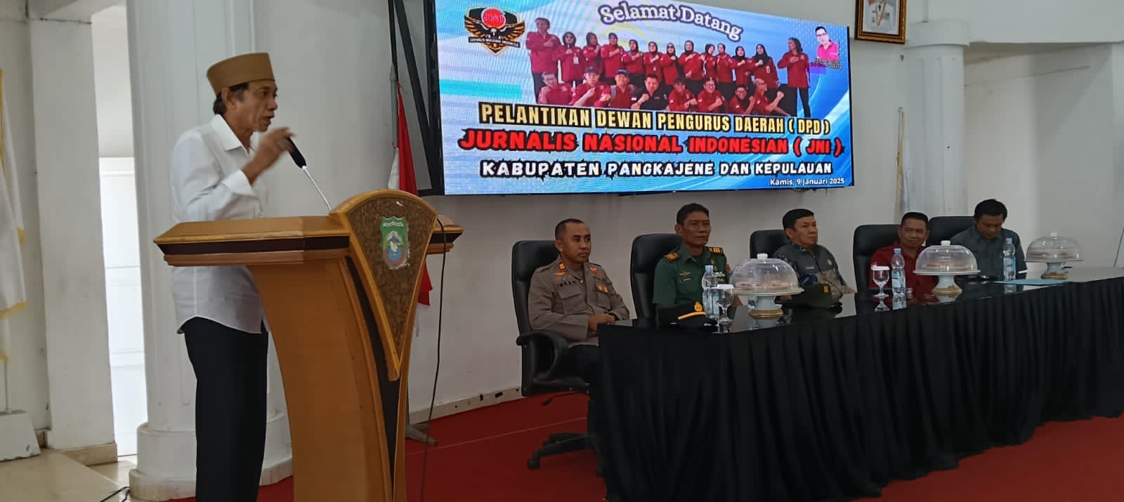 Nusabrita.com, Pangkep – Calon wakil Bupati Pangkep terpilih dan dua wartawan kompetensi Dewan Pers hadir sebagai tamu pelantikan dan pengukuhan kepengurusan pertama organisasi kewartawanan DPD JNI Kabupaten Pangkep periode 2024 – 2030 yang berlangsung di Aula pertemuan umum gedung bundar rumah jabatan Bupati Pangkep pada Kamis 9 Januari 2025.