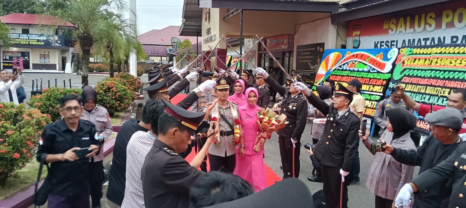 Sedangkan Kapolres baru Husni dalam sambutannya memohon, izinkan saya mengucapkan Minal aidin wal faizin buat rekan-rekan yang melaksanakan hari raya lebaran.