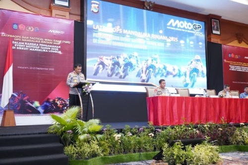 Nusa Brita | Mataram, NTB – Dalam rangka Pengamanan Event MotoGP Mandalika 2025, Polda NTB menyelenggarakan Latpraops Mandalika Rinjani 2025 yang dirangkaikan dengan Tactical Wall Game (TWG) yang berlangsung di Ballroom Hotel Lombok Raya Mataram, Senin (22/09/2025).