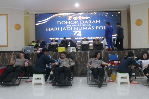 Tak hanya donor darah, kegiatan Hari Jadi Humas Polri ke-74 juga diramaikan dengan pembagian suvenir dan snack ringan untuk para pendonor. Musik ringan dan suasana kekeluargaan membuat kegiatan terasa cair dan penuh kebersamaan.