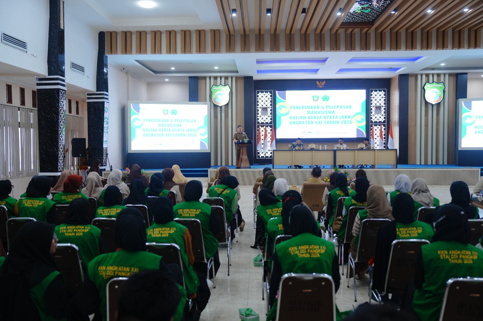 Mahasiswa KKN secara resmi dilepas oleh Bupati Kabupaten Pangkep Dr. Muhammad Yusran Lalogau, S.Pi., M.Si. dan lansung memasangkan secara simbolis Atribut KKN yaitu Rompi dan Topi kepada Perwakilan Mahasiswa KKN, Dalam sambutannya, Bupati Pangkep memberikan arahan kepada seluruh mahasiswa KKN agar selama menjalankan pengabdian di tengah masyarakat dapat lebih menekankan kegiatan-kegiatan keagamaan, baik di lingkungan masyarakat maupun di lingkungan pendidikan. Menurutnya, peran mahasiswa sangat penting dalam memperkuat nilai-nilai keagamaan sebagai pondasi kehidupan sosial.